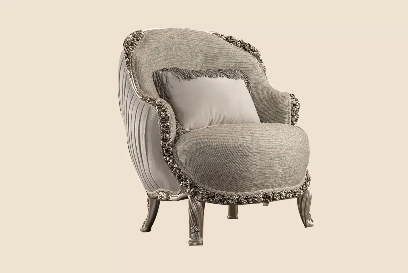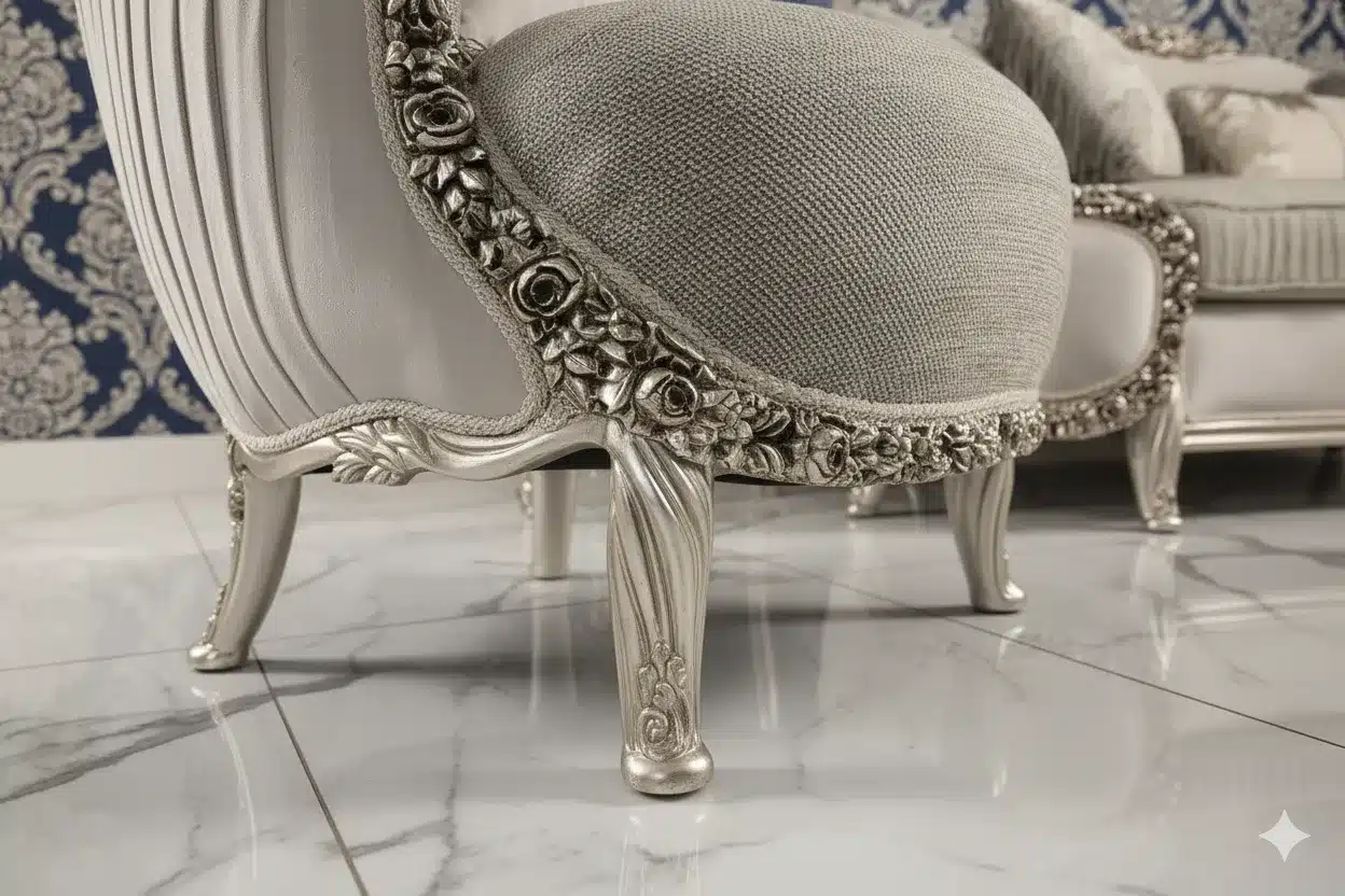 رينيسانس صالون كلاسيك فاخر هو اختيار مثالي لعشّاق الذوق الكلاسيك الفاخر، حيث يأتي بتصميم مستوحى من الطراز الأوروبي الراقي، مع زخارف محفورة بعناية وتشطيبات دقيقة تعكس الحرفية العالية.