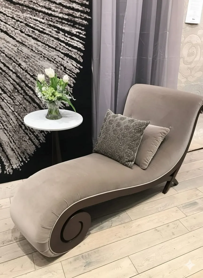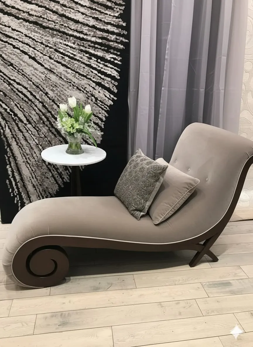 شزلونج استرخاء بتصميم انسيابي مريح يجمع بين الفخامة والراحة، مثالي للاسترخاء والقراءة.