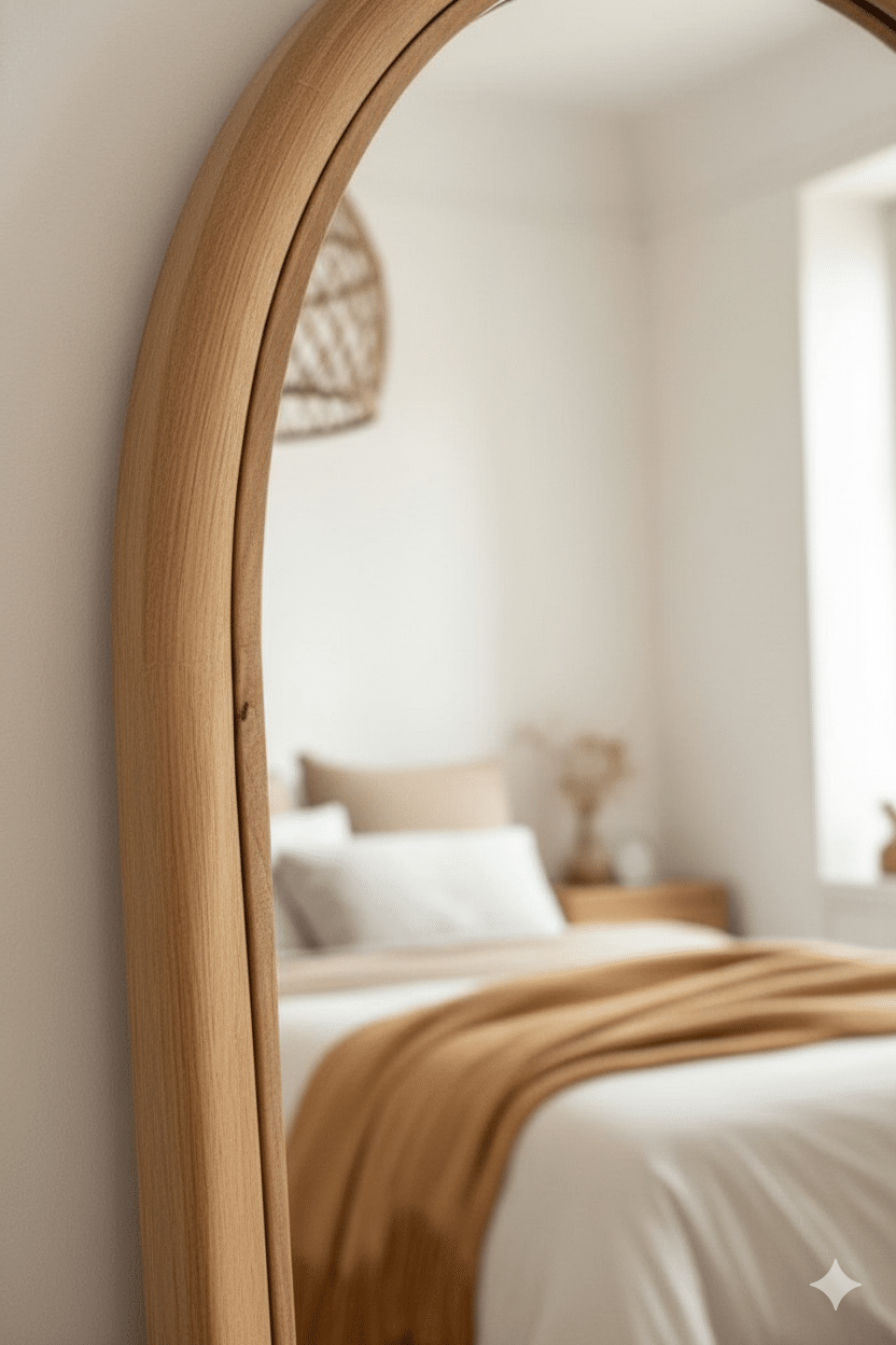 أديـــلا مرايا أرضية خشبية تجمع بين التصميم الخشبي الطبيعي واللمسة الهادئة التي تمنح المكان إحساسًا بالدفء والراحة. تأتي بإطار خشبي ناعم بانحناءات متوازنة تضيف عمقًا بصريًا وتنسجم مع مختلف أنماط الديكور المودرن والنيوكلاسيك.