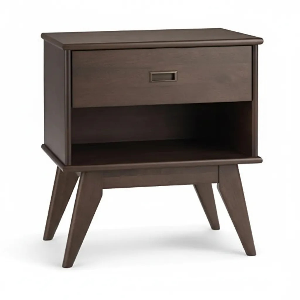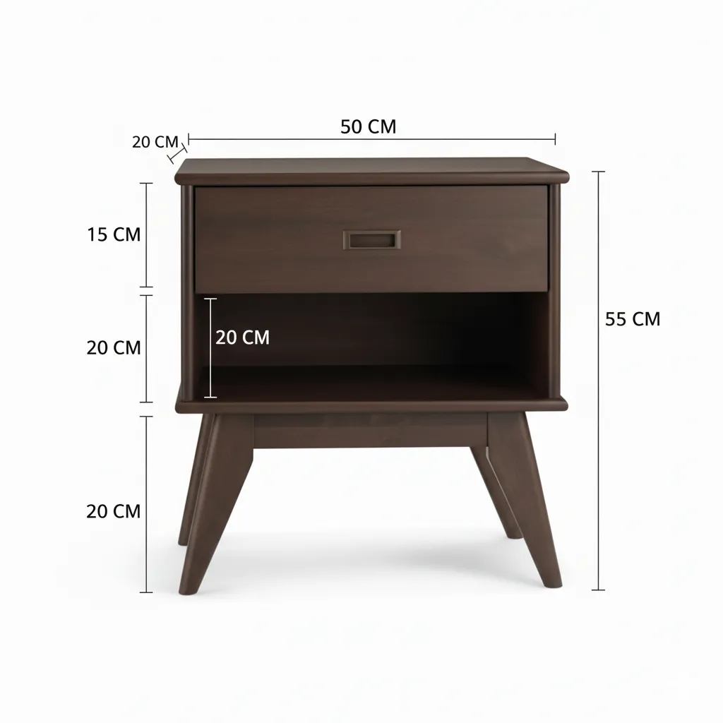 كومود جانبي مودرن بتصميم بسيط وعصري مصنوع من الخشب الطبيعي، مناسب لغرف النوم الحديثة ويوفر مساحة عملية للتخزين.