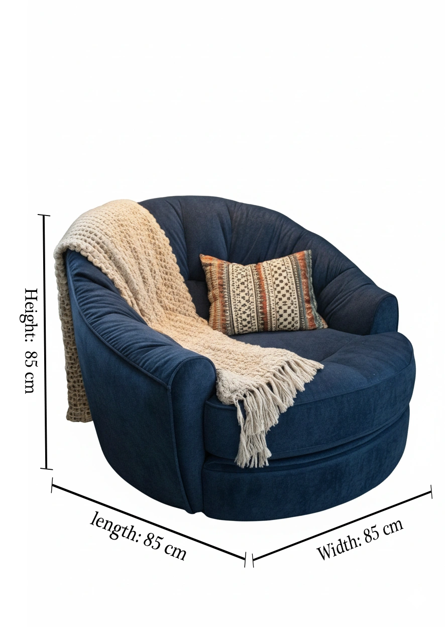 مصنوع من قماش قطيفة ناعم باللون الأزرق الداكن مع وسادة زخرفية أنيقة تضيف لمسة دفء وعصرية لأي مساحة.