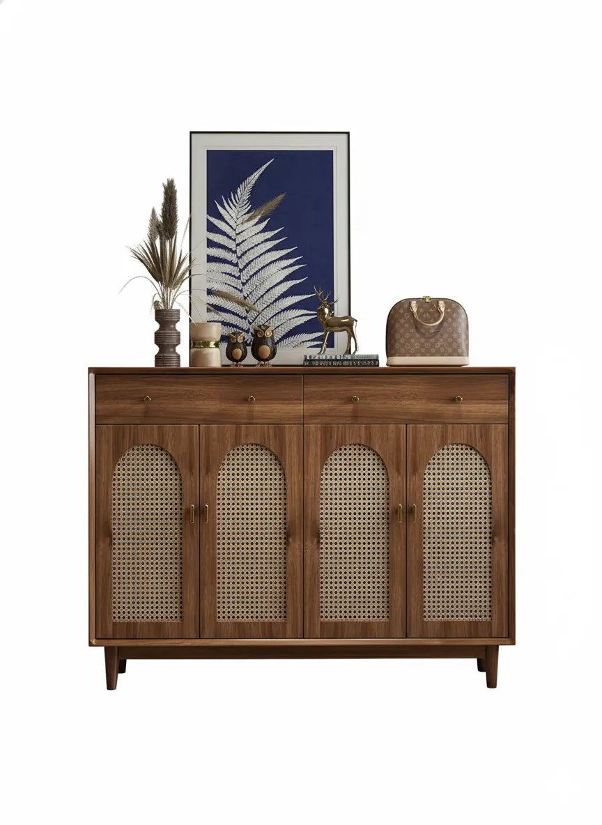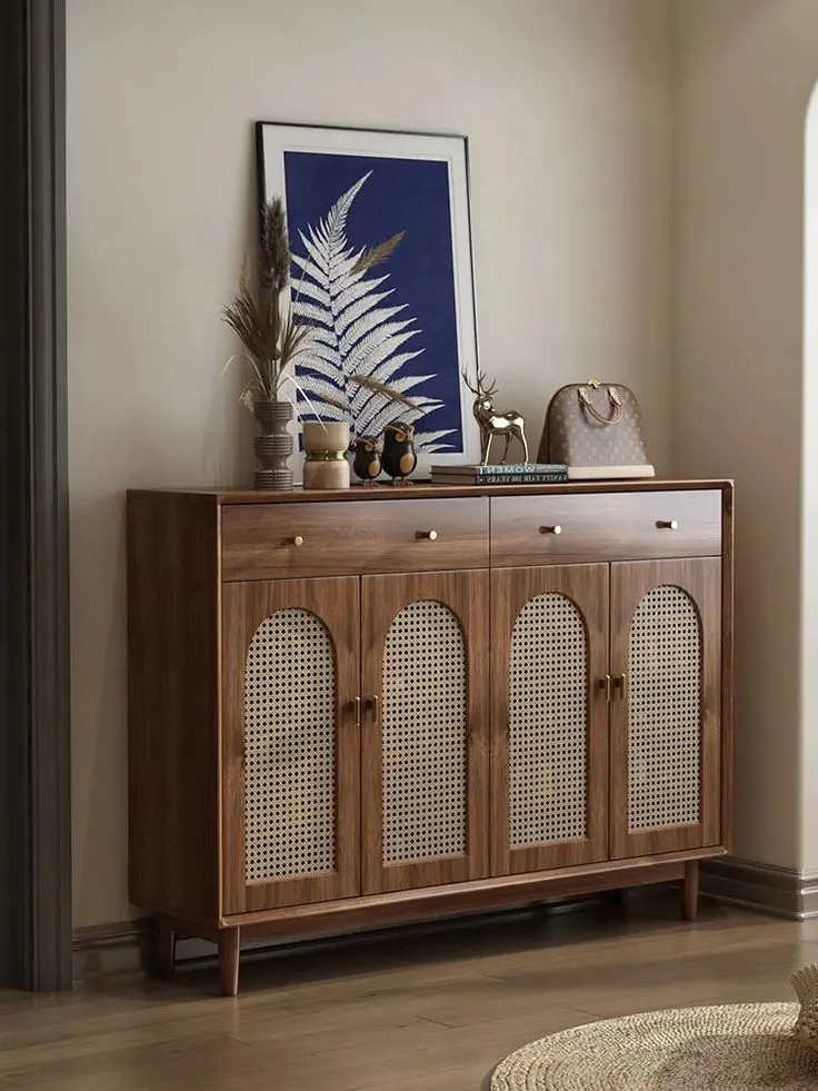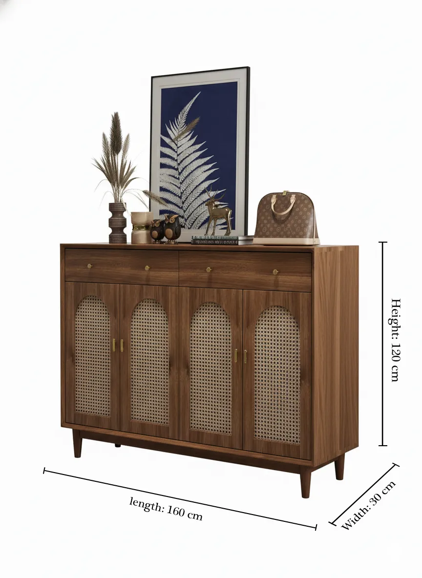تحتوي على أربعة أبواب تخزين مع أدراج علوية لحفظ الأغراض الصغيرة، وتوفر مساحة عملية لتخزين الأحذية بشكل منظم.