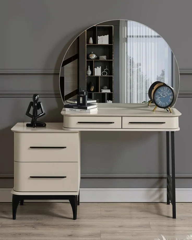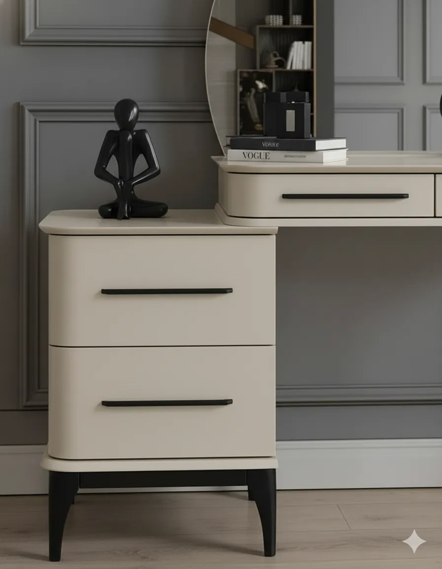 مثالية لغرف النوم العصرية ومحبي التفاصيل الراقية، كما توفر سطح عملي لوضع مستحضرات التجميل والإكسسوارات اليومية.