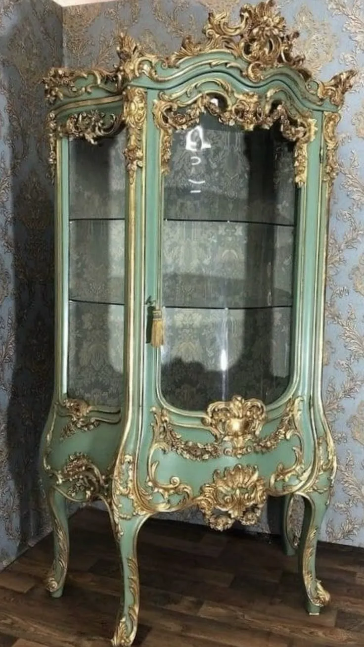 الواجهة الزجاجية المنحنية تمنح رؤية واضحة للمقتنيات، مما يجعله مثاليًا لعرض التحف، الكريستال، أو القطع الزخرفية الفاخرة. تصميم الأرجل المنحوتة والكرانيش العلوية المزخرفة يعكس روح الأثاث الأنتيك الأوروبي، ليكون النيش قطعة محورية في غرف السفرة أو الصالونات الكلاسيك.