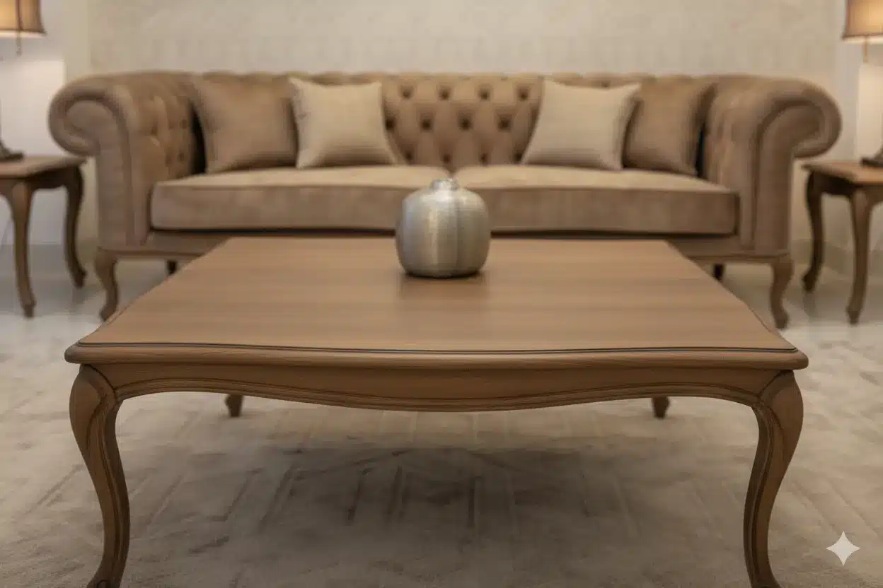 التصميم يتميّز بانحناءات كلاسيكية ناعمة، مع تفاصيل تضفي إحساسًا بالدفء والرقي، ليكون اختيارًا مثاليًا لغرف المعيشة الفاخرة والصالونات الرسمية.
