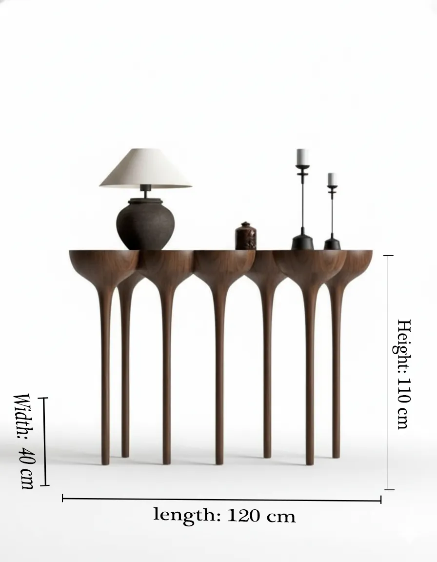 سطحه الخشبي المتين يوفر مساحة مثالية لوضع الديكورات، اللوحات، الإضاءات والإكسسوارات الداخلية، مما يجعله إضافة فاخرة لأي مدخل أو غرفة معيشة أو ريسبشن.
