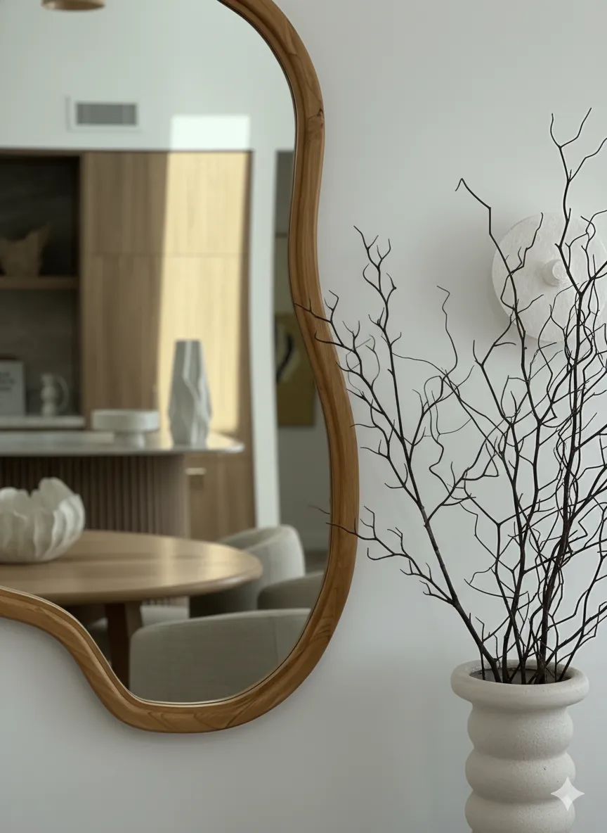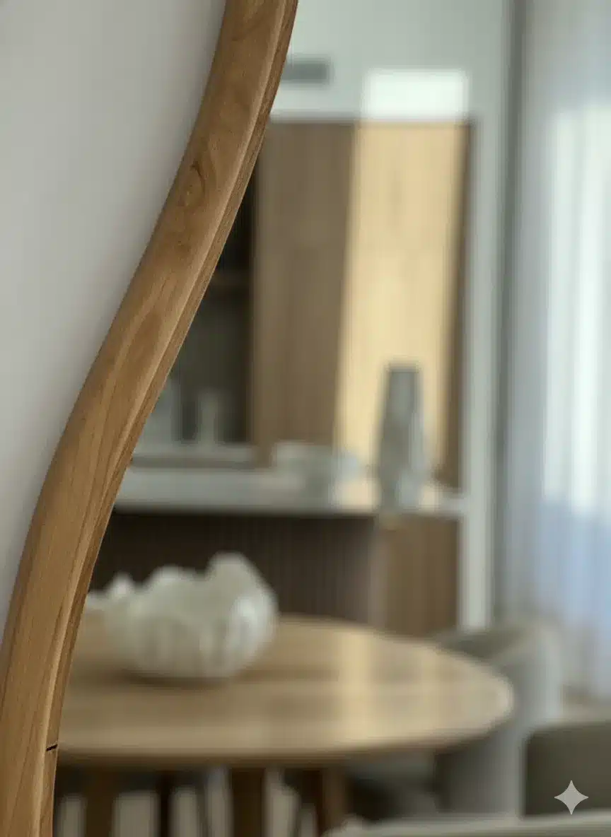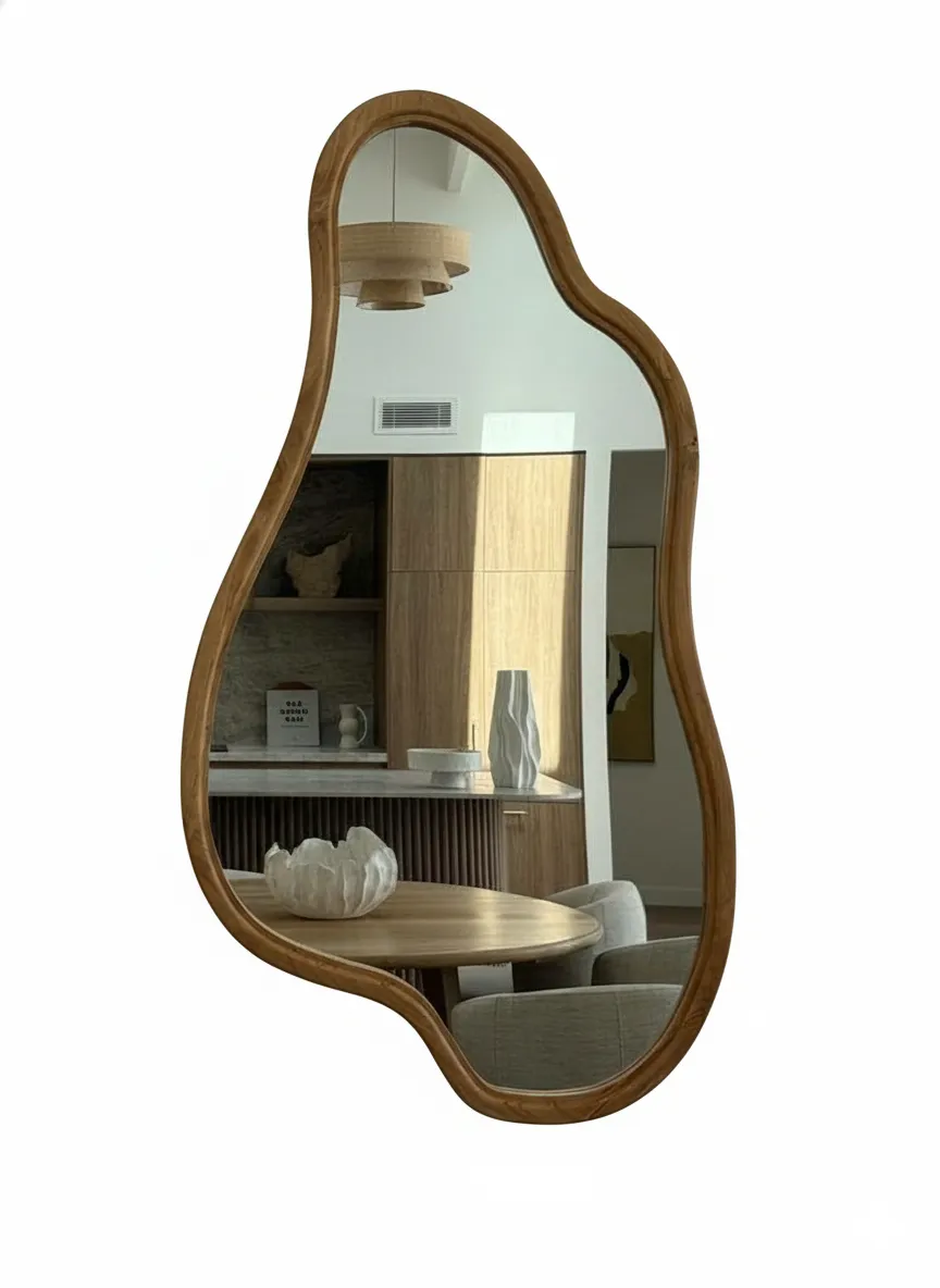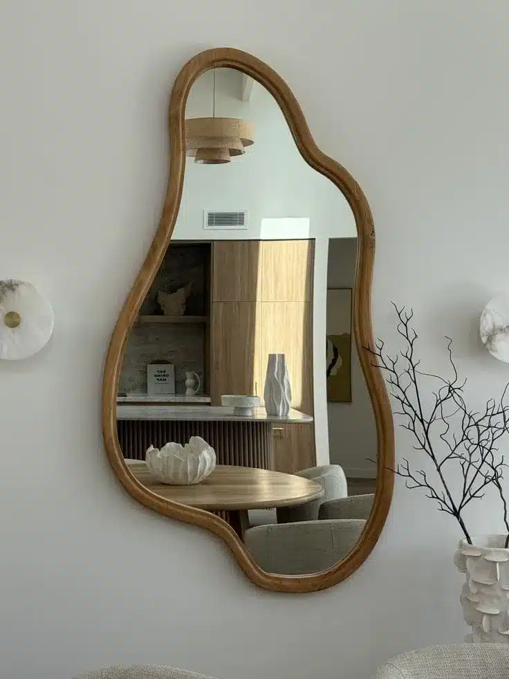 أونيلا مرايا حائط خشبية بتصميم فني عصري تجمع بين الجرأة والرقي، حيث يأتي شكلها الانسيابي ليضيف لمسة ديكورية فريدة وكأنها قطعة فنية على الجدار. مصنوعة من خشب طبيعي بجودة عالية مع تشطيب أنيق، مما يجعلها مناسبة لغرف المعيشة، غرف النوم، المداخل، أو حتى مساحات الاستقبال.