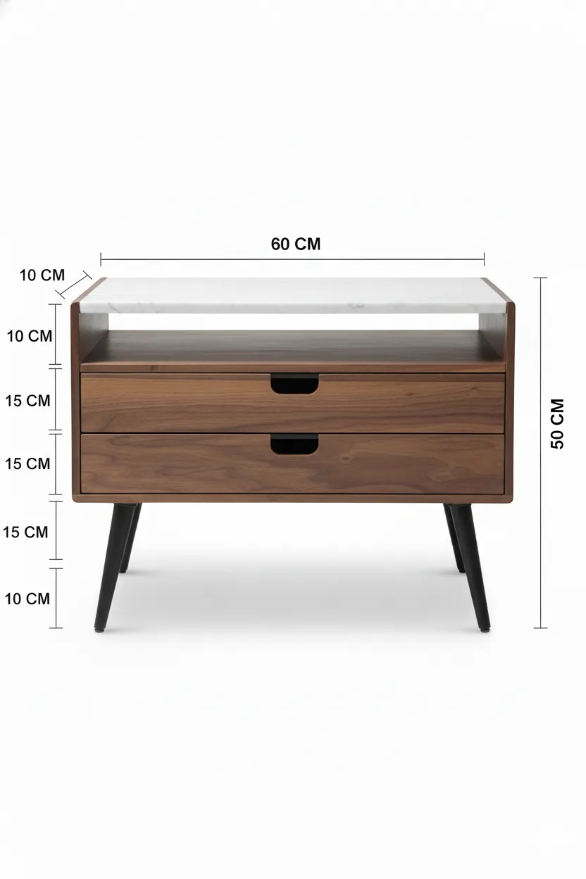 يأتي بسطح علوي من الرخام لمسة راقية، وهيكل خشبي طبيعي متين يعكس جودة التصنيع ودقة التفاصيل.