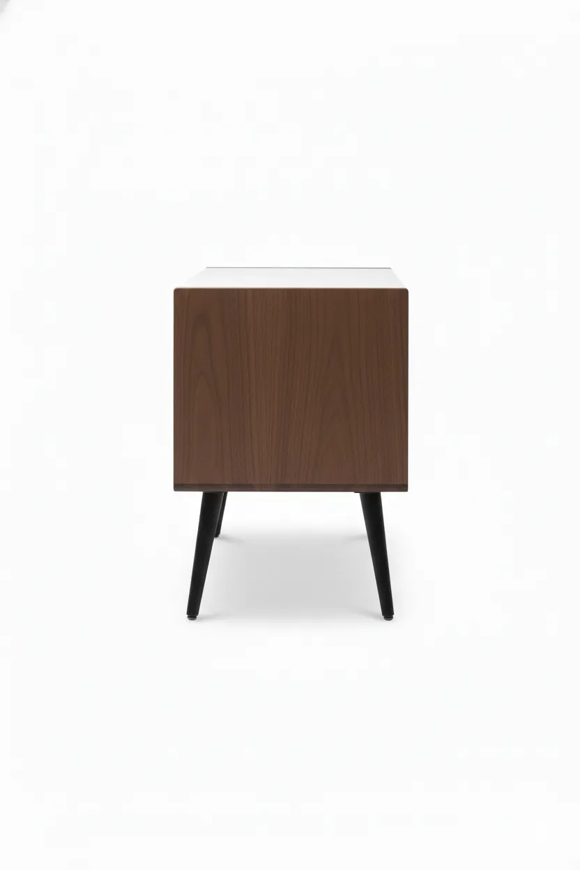 مزود بدرجين للتخزين مع فتحة سحب مدمجة لمظهر نظيف وأنيق، وأرجل معدنية مائلة باللون الأسود تمنح ثباتًا وشكلًا حديثًا.