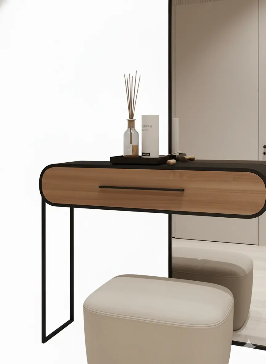 يأتي التصميم بسطح خشبي ناعم يمكن استخدامه لتزيين مدخل البيت بالديكورات أو العطور، مع مقعد مبطن مريح يسهل ارتداء الأحذية براحة وأناقة.