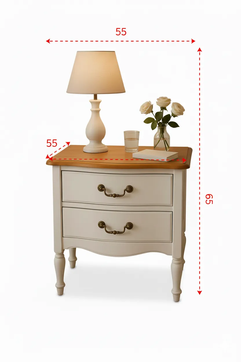 تم تصنيعه بدقة من خشب طبيعي عالي الجودة لضمان المتانة والثبات على المدى الطويل، مع لمسة نهائية ناعمة تسهّل التنظيف وتحافظ على مظهره الأنيق. مزود بدرجين بقبضات معدنية كلاسيكية لحفظ الأغراض الشخصية مثل الهاتف، شاحن، مستحضرات أو كتب، مما يجعله عمليًا وديكوريًا في نفس الوقت.