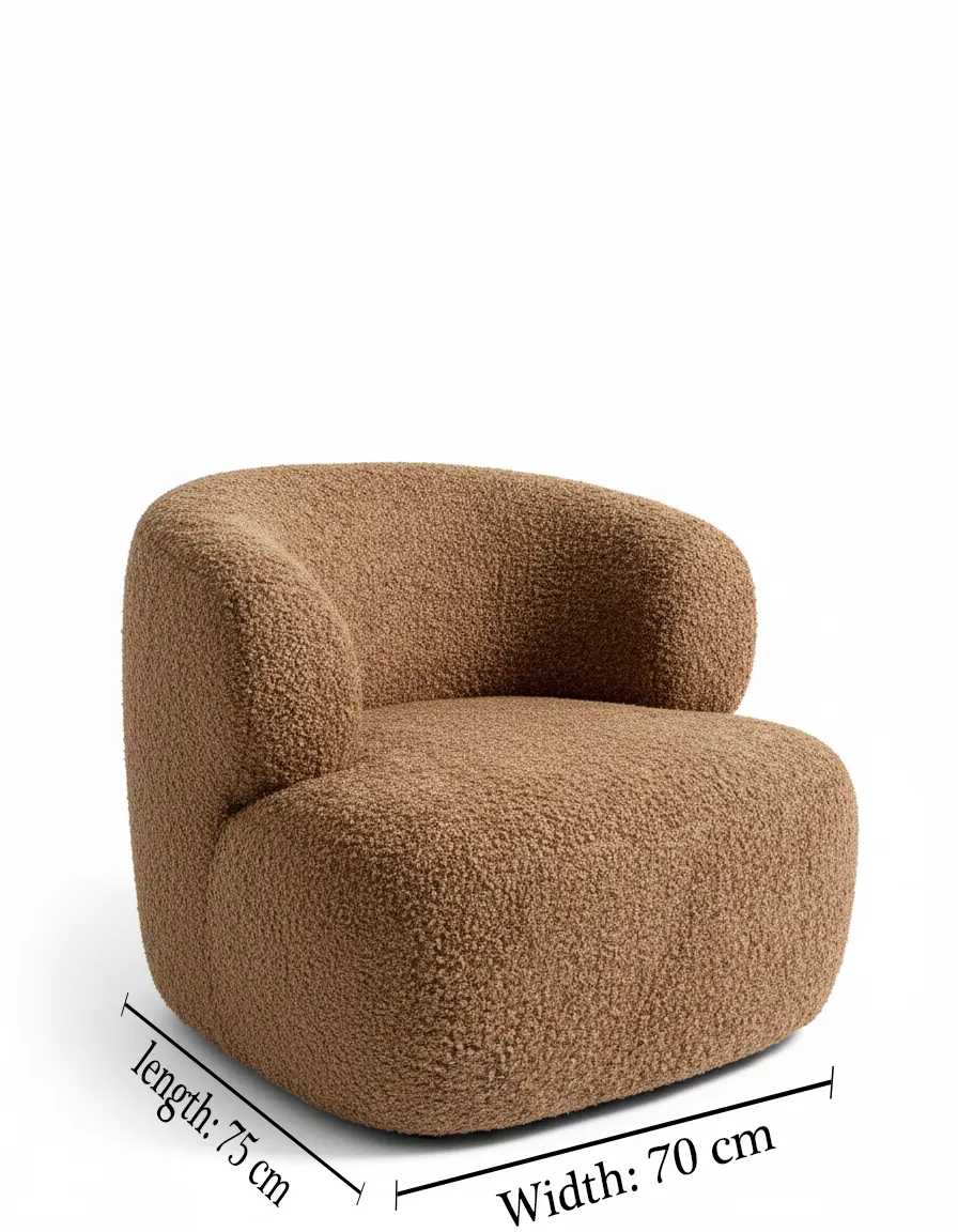 يجمع تيرا كرسي مودرن بين الخطوط العضوية والملمس الغني لقماش البوكلية ليقدّم تجربة جلوس مريحة وأنيقة في نفس الوقت. يمنحك الشكل المنحني دعماً لطيفاً للظهر والذراعين، بينما يوفّر الإسفنج عالي الكثافة توازناً ممتازاً بين النعومة والثبات. بفضل لونه الترابي الدافئ، ينسجم الكرسي بسهولة مع الديكورات الهادئة والمودرن على حدّ سواء، ليصبح قطعة تركّز الجوّ في ركن القراءة أو بجانب الطاولة الجانبية.