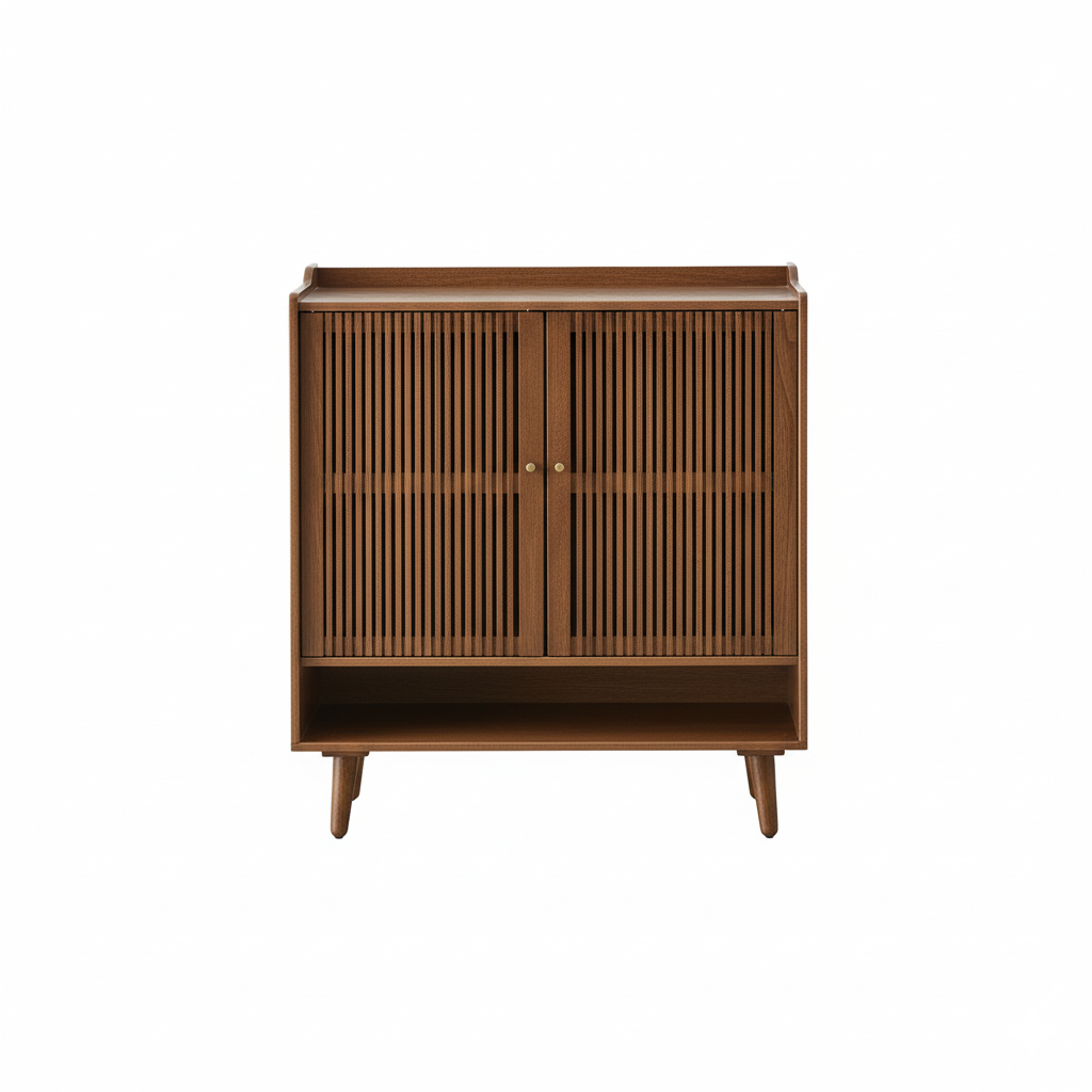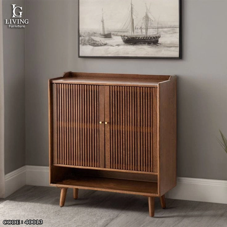 مزودة ببابين أماميين بخطوط رأسية تضيف لمسة فنية، مع رف سفلي مفتوح يسهل الوصول للأحذية اليومية.