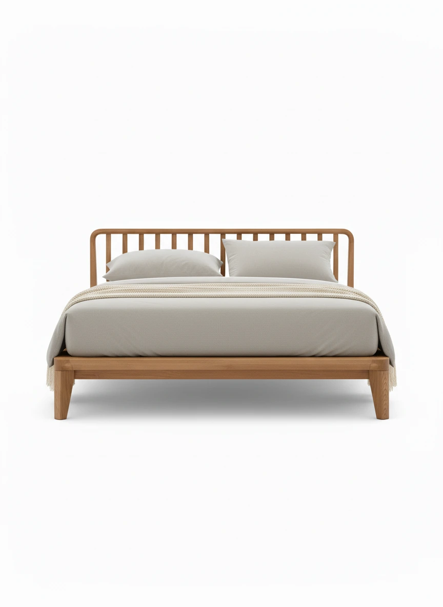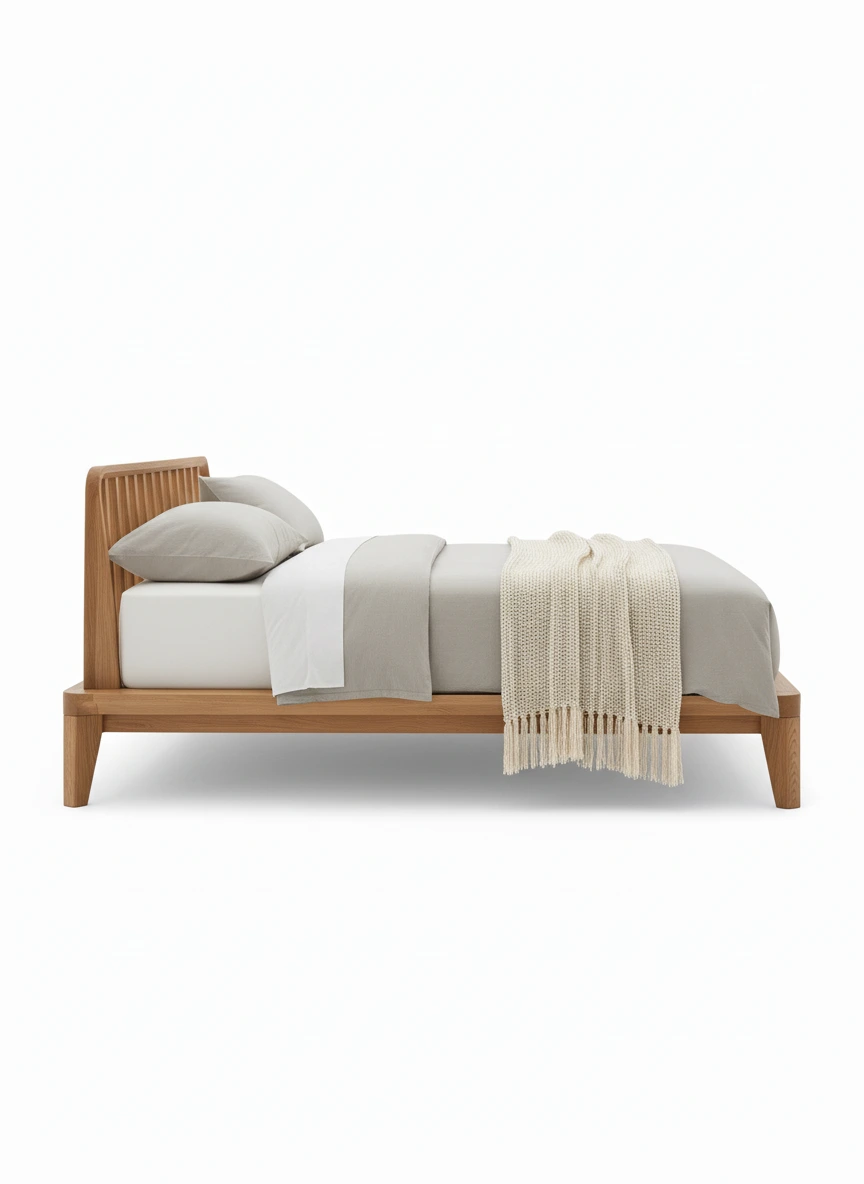 مصنوع من خشب طبيعي عالي الجودة بملمس دافئ ولون فاتح يضفي على غرفة النوم طابعًا مريحًا وهادئًا.