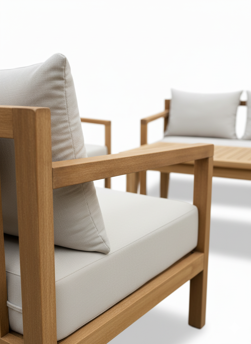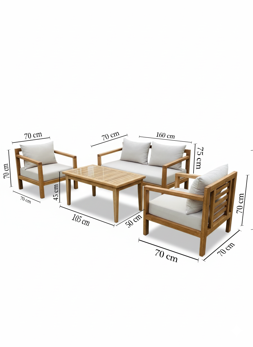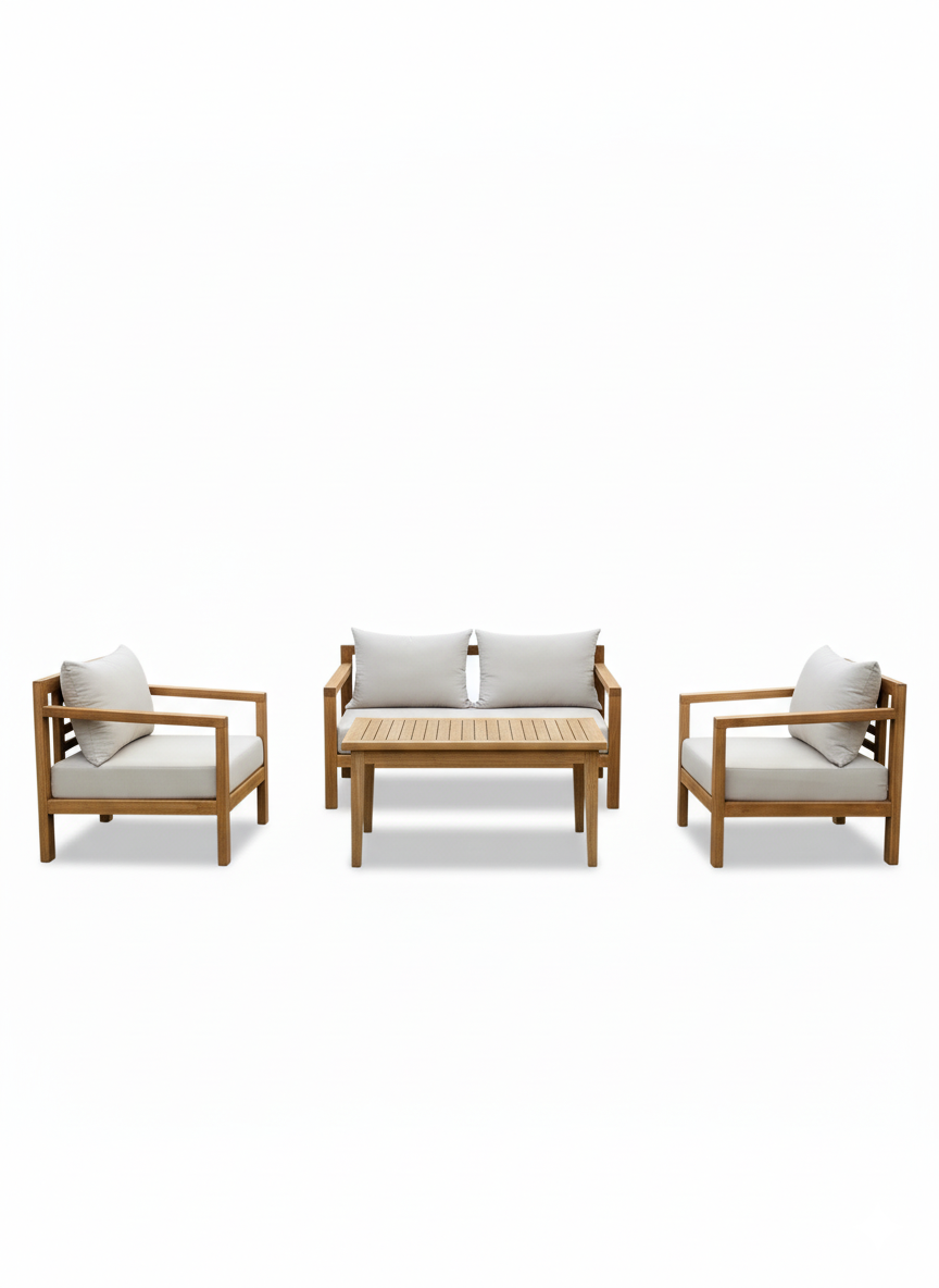 استمتع بجلسات هادئة ومريحة مع سيينا طقم خارجي خشبي أنيق من LIVING، يجمع بين الجمال الطبيعي للخشب وجودة التصميم العصري.
