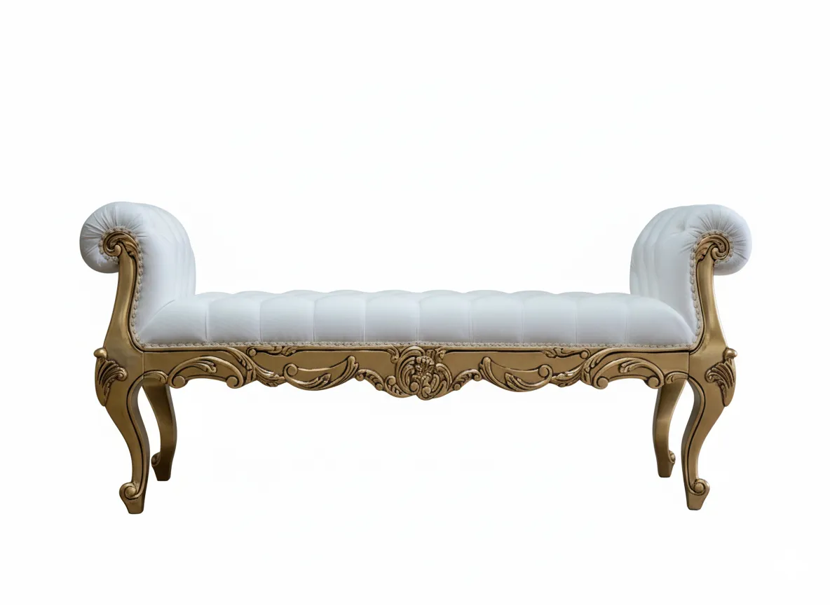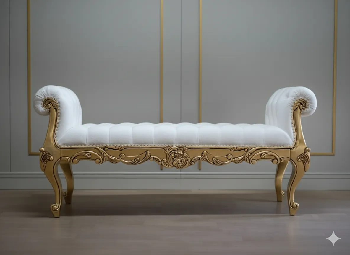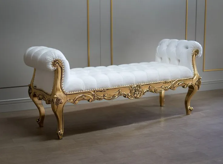 يقدّم فاليريس شزلونج استرخاء كلاسيك مذهّب تجربة فريدة تجمع بين الفخامة الكلاسيكية والراحة العملية. يتميز بهيكل خشبي متين مزخرف بنقوش يدوية مذهّبة تضيف طابعًا ملكيًا راقيًا، مع تنجيد مبطن بتقنية الكابيتونيه يعزز الراحة ويمنح القطعة حضورًا بصريًا قويًا.
