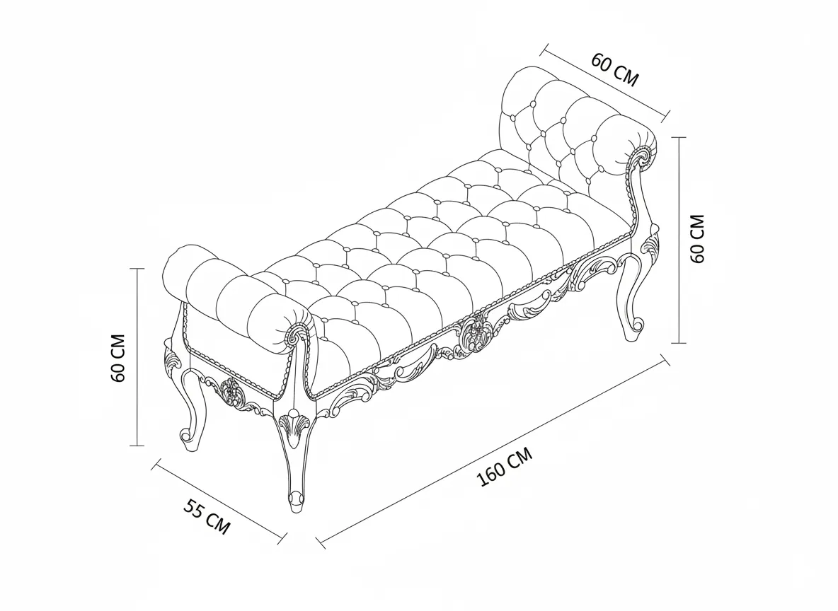 الأبعاد: الطول 160 سم × العرض 55 سم × الارتفاع 60 سم.