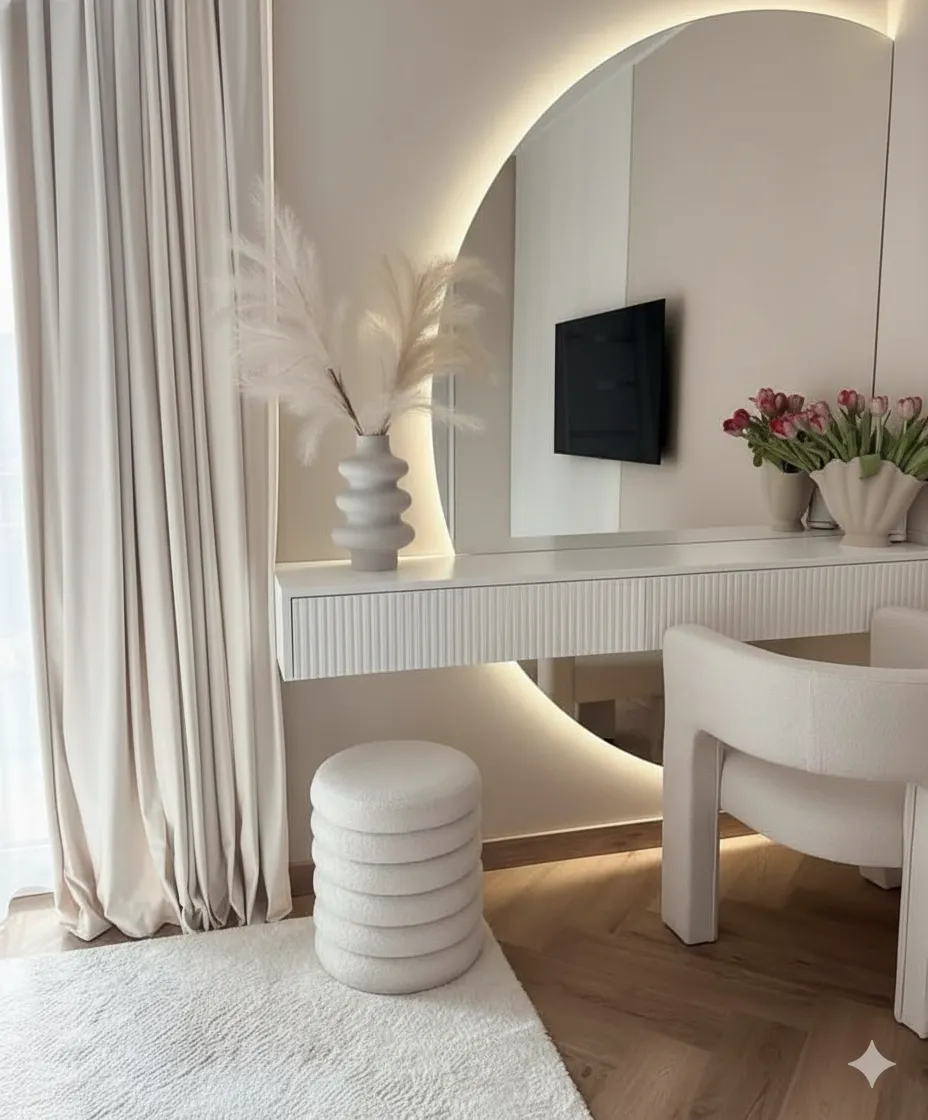 تُعد الخيار المثالي للـ Makeup Corner أو تسريحة غرفة النوم، مع إمكانية تخصيص المقاسات والألوان حسب الطلب. استخدام خامات عالية الجودة يضمن الثبات والمتانة.