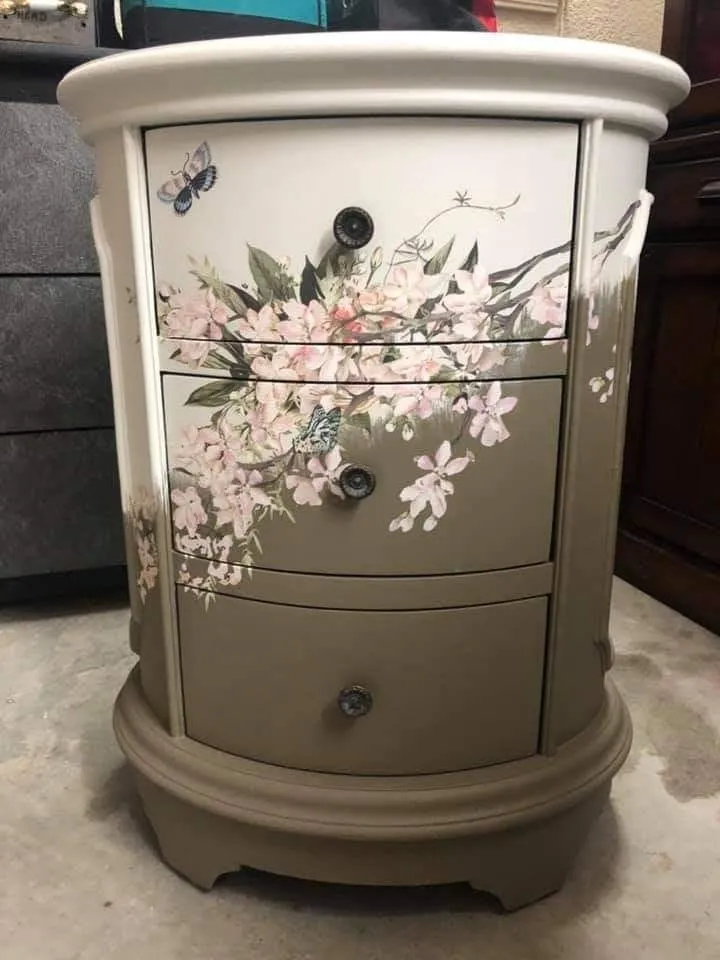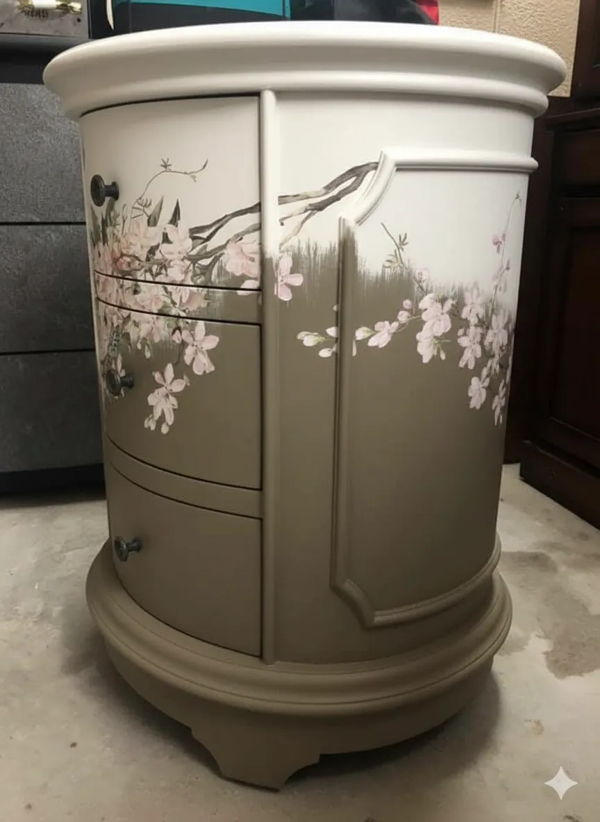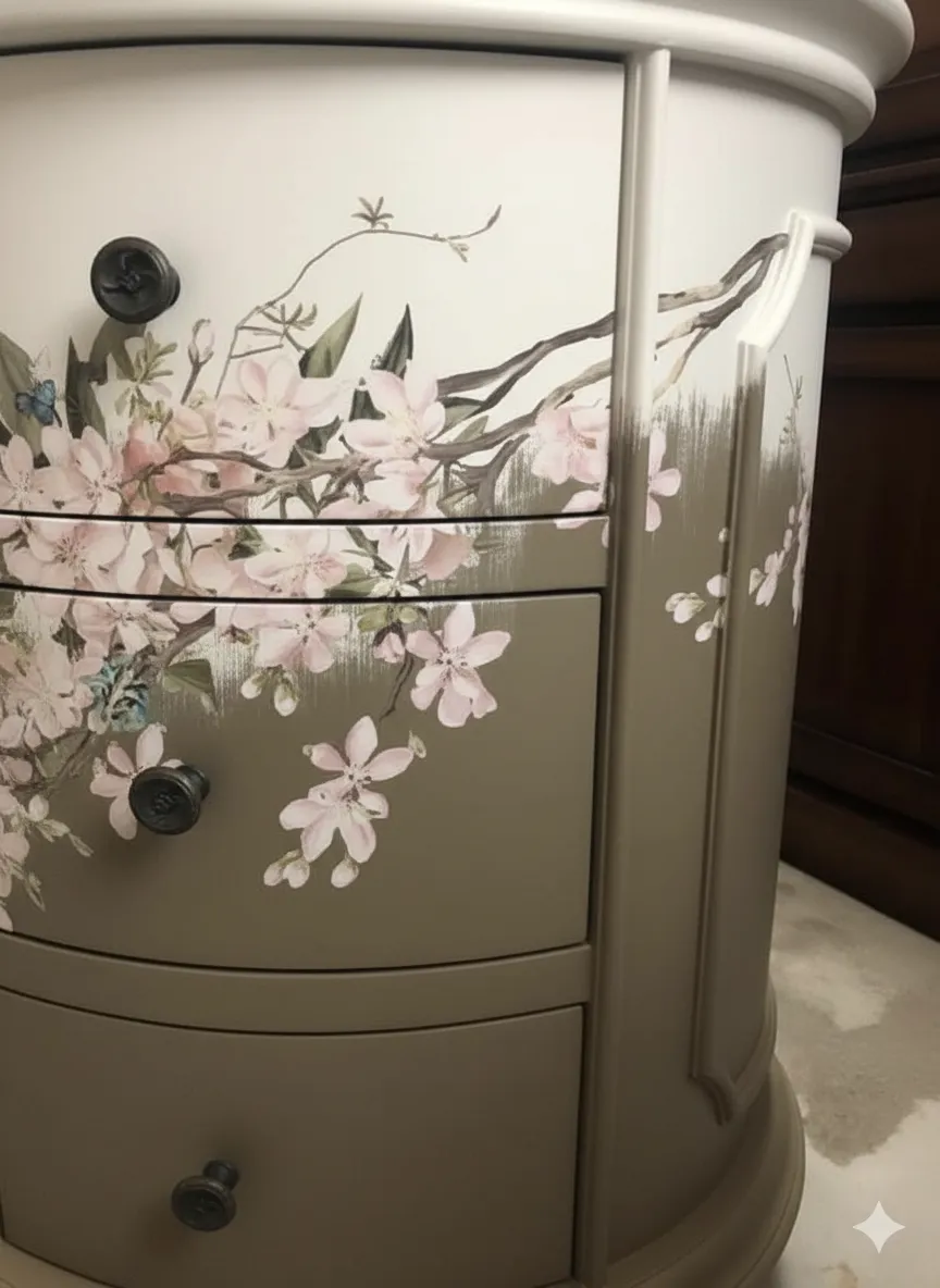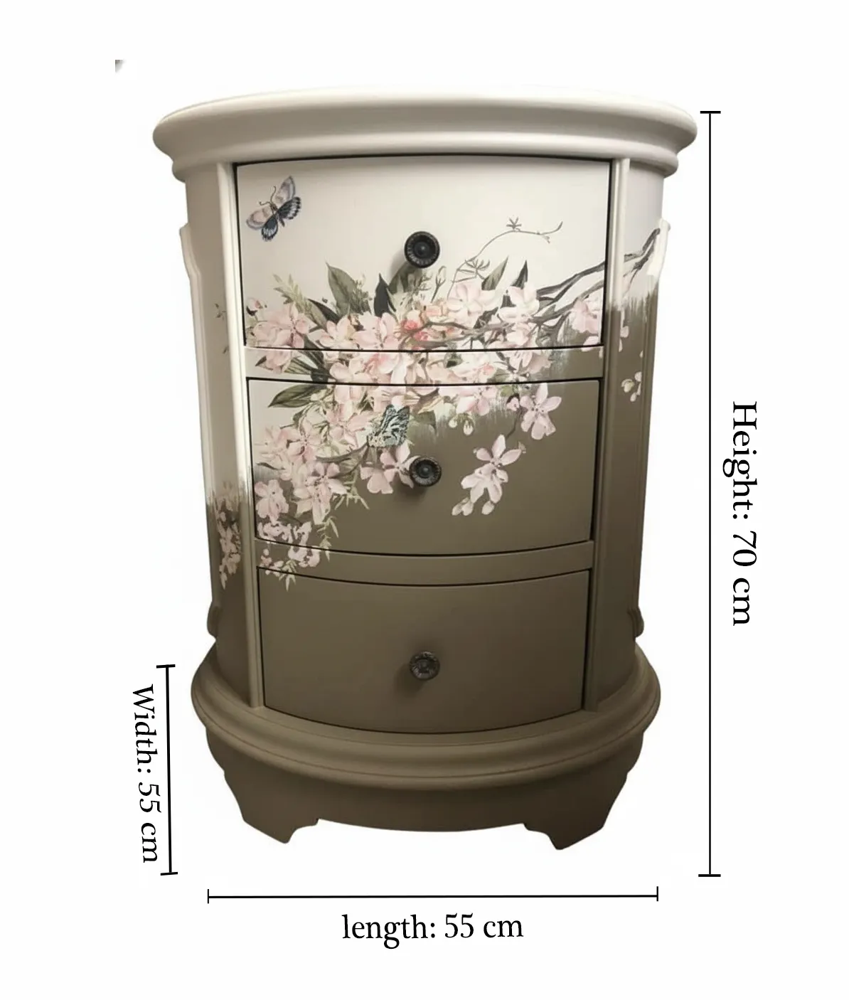 وحدة تخزين أنيقة بتصميم مزخرف برسومات زهور هادئة، مثالية لغرف النوم والركن الجانبي.
