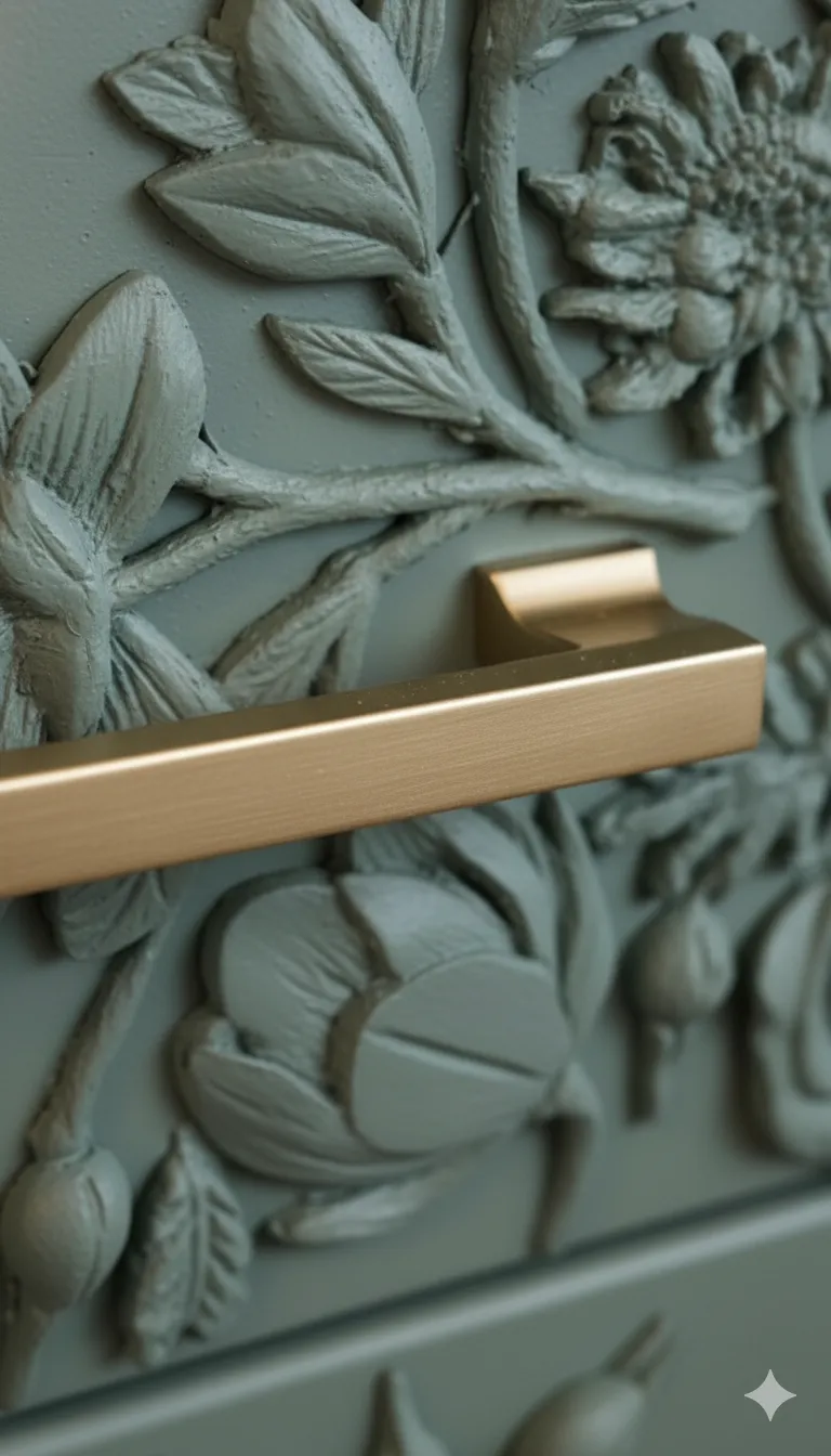 أخضر زيتوني هادئ مع مقابض ذهبية